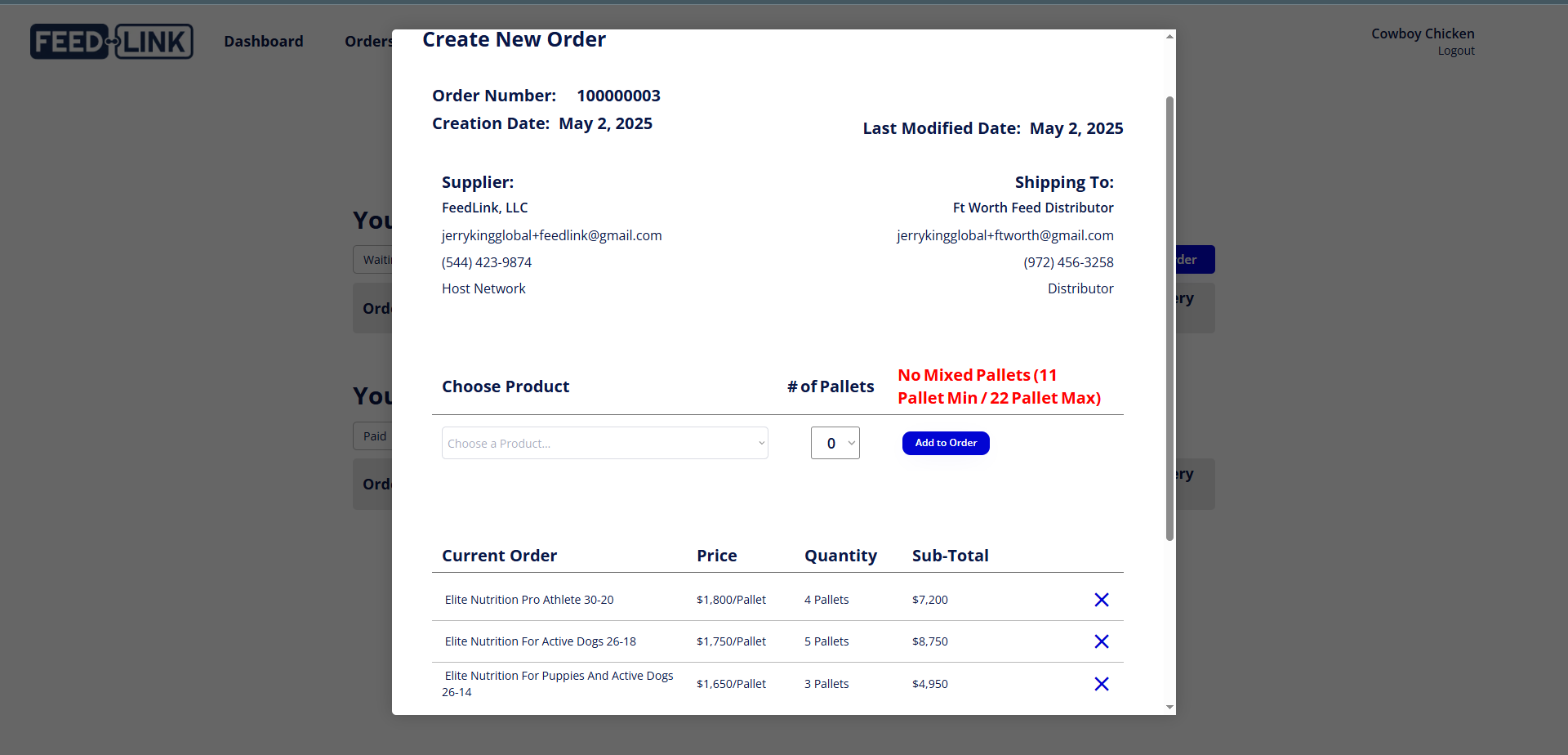 The primary value proposition of FeedLink is that the solution can be implemented within any organization that owns the distribution and dealer network. The governing organization can incorporate all their distributors and their assigned dealers into one seamless supply chain. Once the networks have been created, dealers can submit bulk feed orders to their assigned distributors. Once approved, the platform facilitates payments using Stripe. Each order has process and delivery updates which incorporates inventory updates for each dealer. These ordering features create an efficient and transparent workflow that eliminates manual processes in the supply chain process.